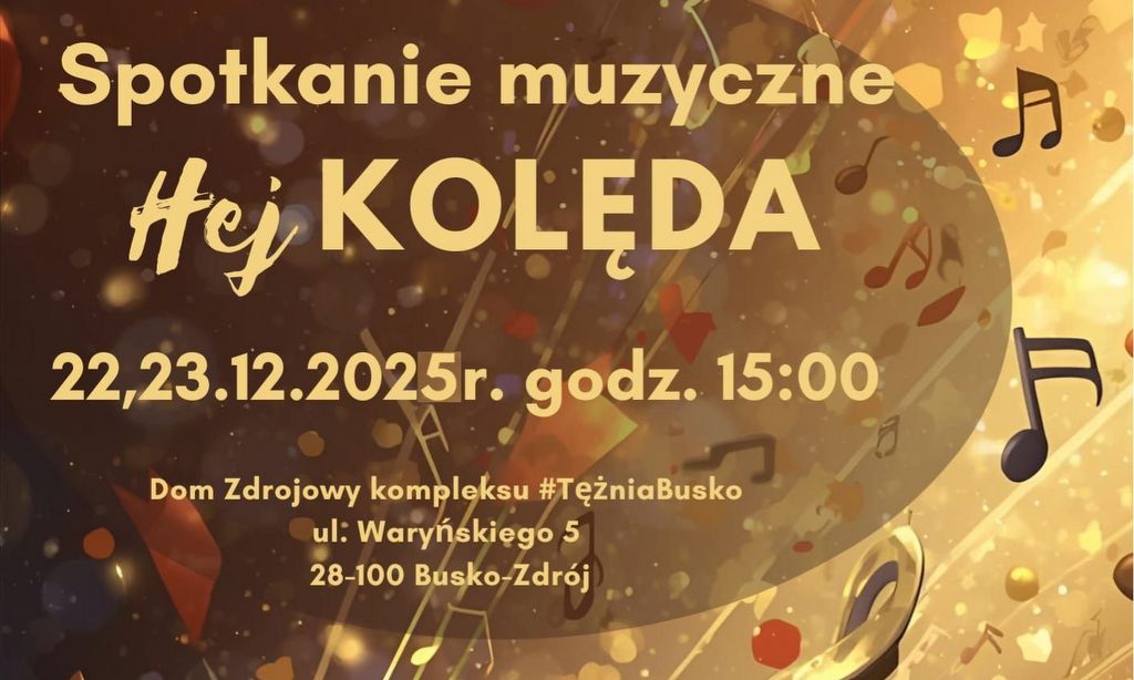 Burmistrz Miasta i Gminy Busko-Zdrój oraz Buskie Samorządowe Centrum Kultury serdecznie zapraszają na wyjątkowy, świąteczny koncert „Hej kolęda”, który odbędzie się 14 grudnia o godz. 16:00.