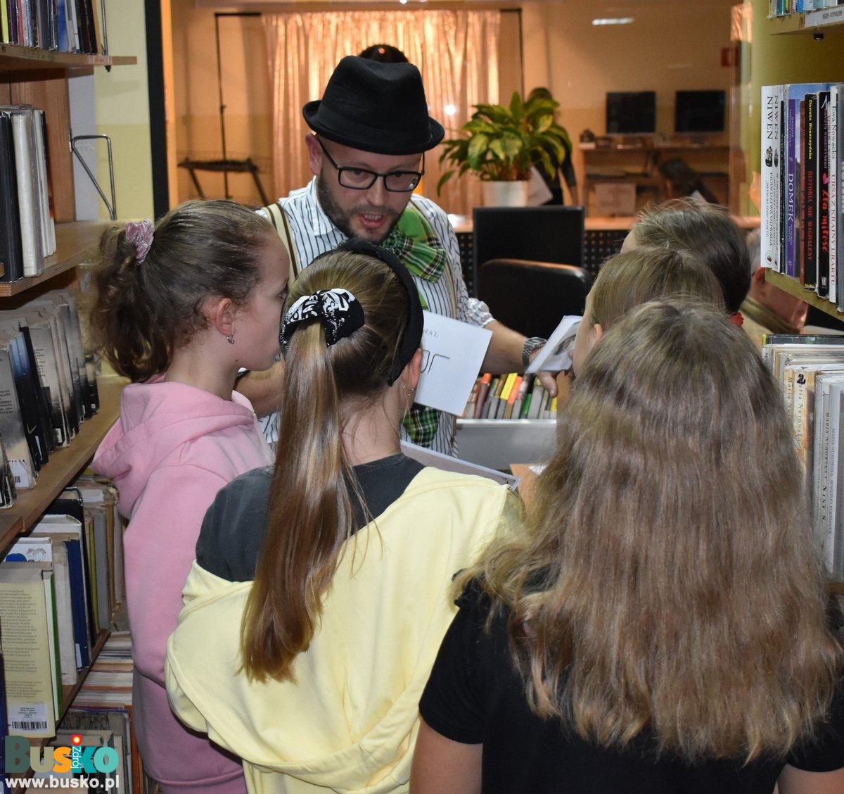 W Oddziale dla Dzieci na uczestników tego wyjątkowego wydarzenia czekało spotkanie z Karolem Baranowskim - Detektywem, który przygotował dla młodych poszukiwaczy zagadki, szyfry i łamigłówki do rozwiązania. Dzieci musiały wyjaśnić zagadkę zaginionej książki i odnaleźć złodzieja, który przywłaszczył sobie własność biblioteki. Młodzi detektywi działający wspólnie w grupach starannie wykonywali zadania i korzystali z podpowiedzi pozostawionych w różnych miejscach w bibliotece.