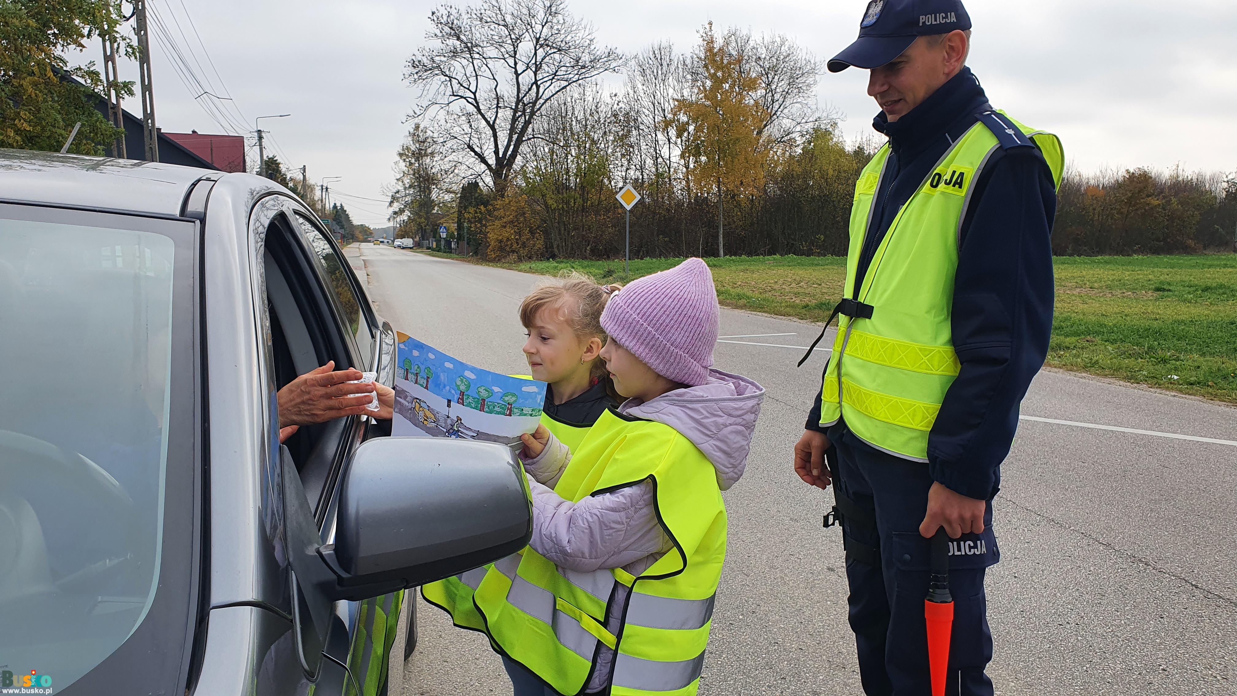 Kierowcy bardzo pozytywnie reagowali na udział uczniów w akcji. Każdy kontrolowany uczestnik ruchu otrzymał rysunek o tematyce bezpieczeństwa, który uczniowie przygotowali w ramach Konkursu plastycznego „Bezpieczny pieszy” oraz odblask do codziennego użytku.